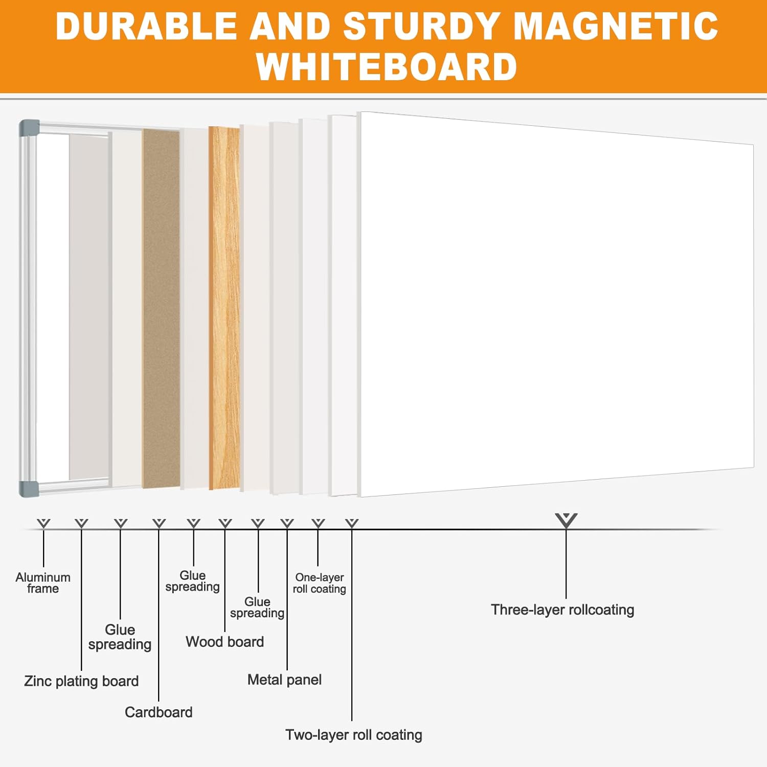 Large Magnetic Dry Erase Whiteboard, 60″X40″ White Board for Wall with Long Pen Tray, Dry Erase White Board for Home Office Classroom