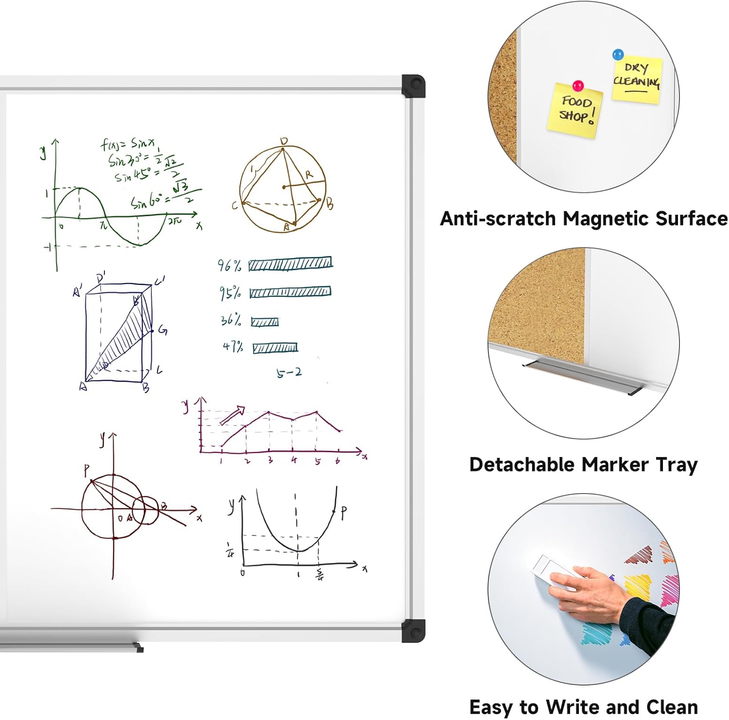 XBoard Magnetic whiteboard 36 x 24 – Combo Whiteboard Dry Erase Board Cork Board 36 x 24